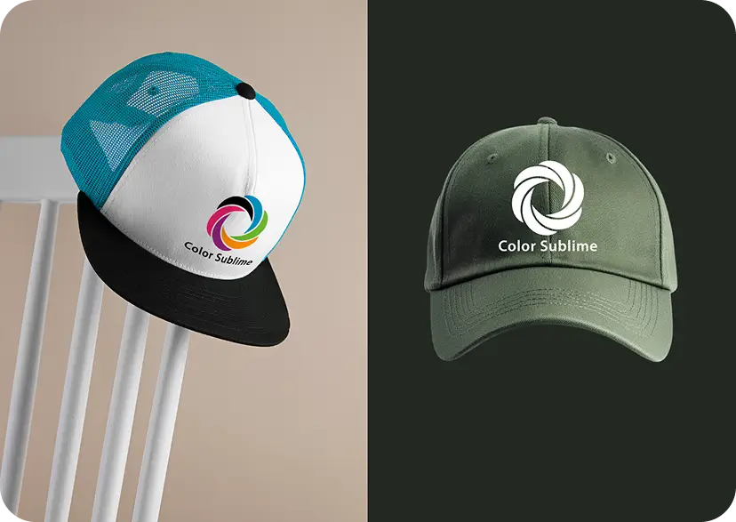 - Sublimación: ideal para gorras de poliéster blanco, ofreciendo un acabado vibrante, integrado en la tela y de alta durabilidad.